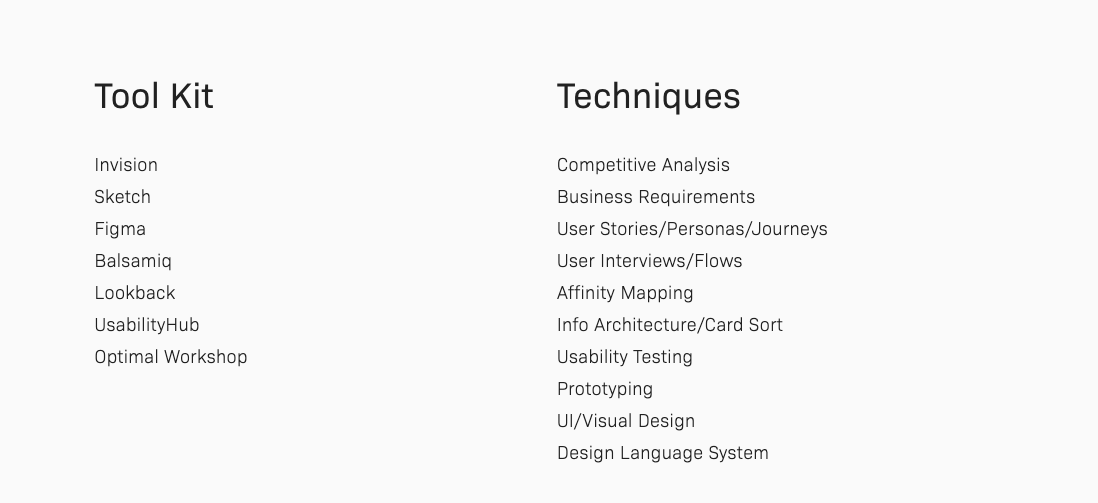 “Before transition into the world of UI/UX, I had spent ten plus years as a graphic designer and touring musician. I landed my first design gig in college and progressively moved my way into roles where I designed everything from production graphics to websites. As a freelance designer, I took advantage of my musical network to work on more creative projects, designing everything a band would need, from gig posters, to album artwork, to social and print assets. As a musician, I’ve been fortunate to tour the country and have music I have written and performed find its way into ads, shows, and movies, notably for Jack Daniels, Budweiser, BMW, and the Academy Award-winning documentary, Free Solo.”