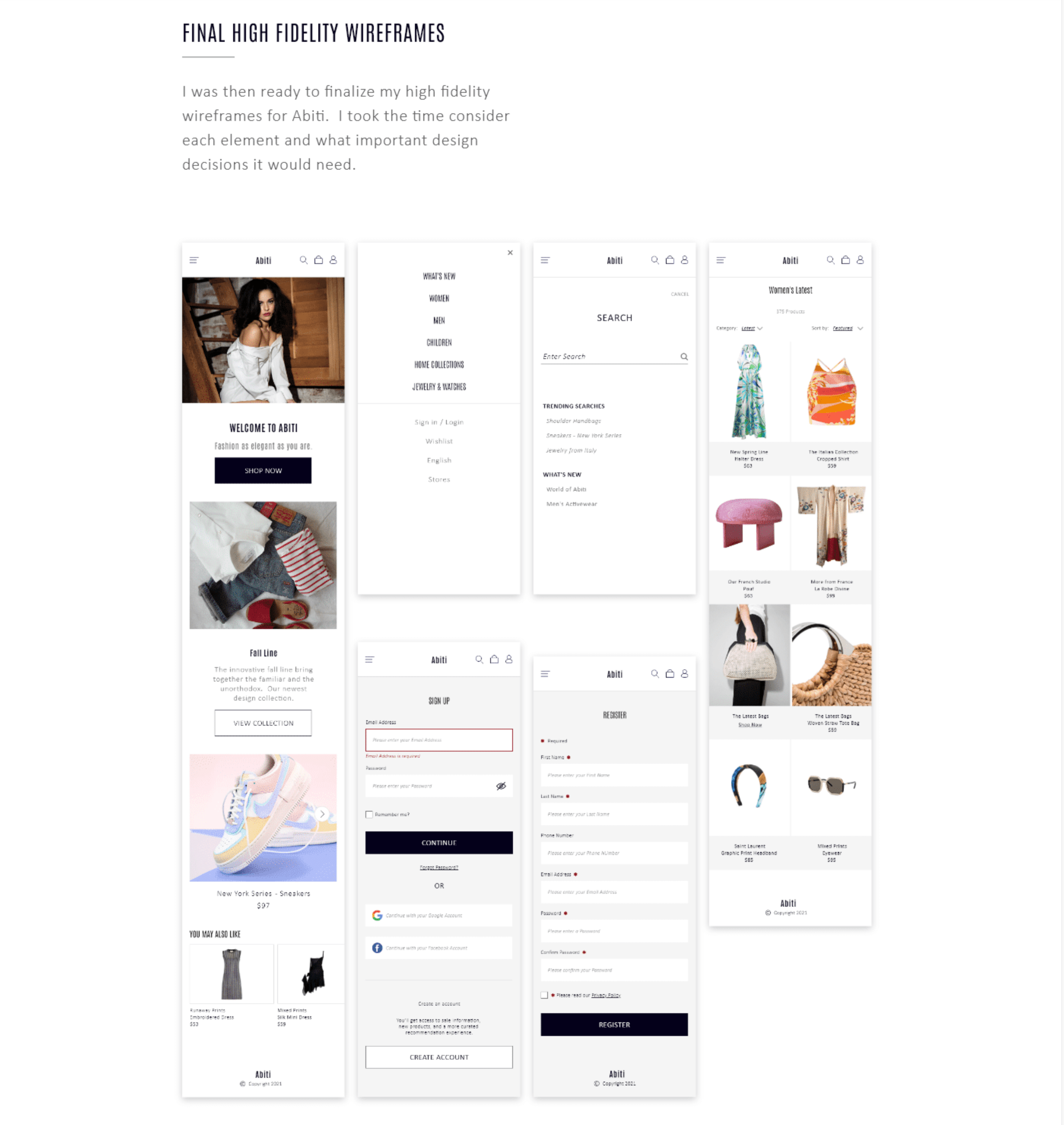 During the CareerFoundry UI Design Program, you’ll build out a job-ready portfolio. Here is a breakdown of graduate Andrew’s portfolio project, Abiti. If you’d like to visit his full portfolio, head here.