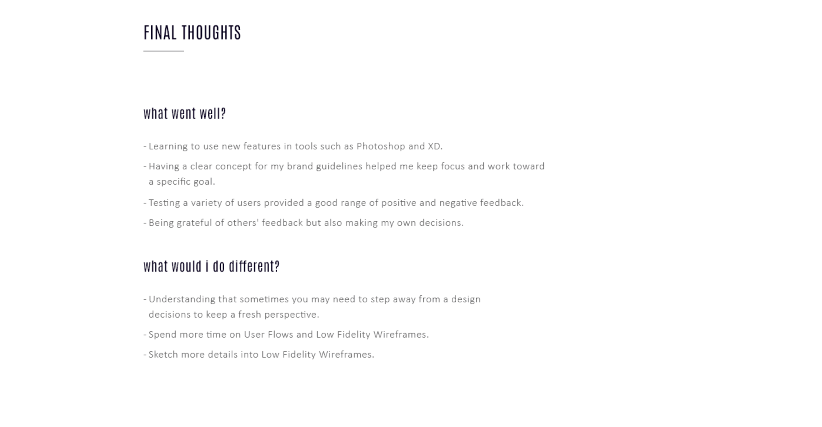 I enjoyed bringing a large amount of coursework together to showcase a full result of the design thinking process.
