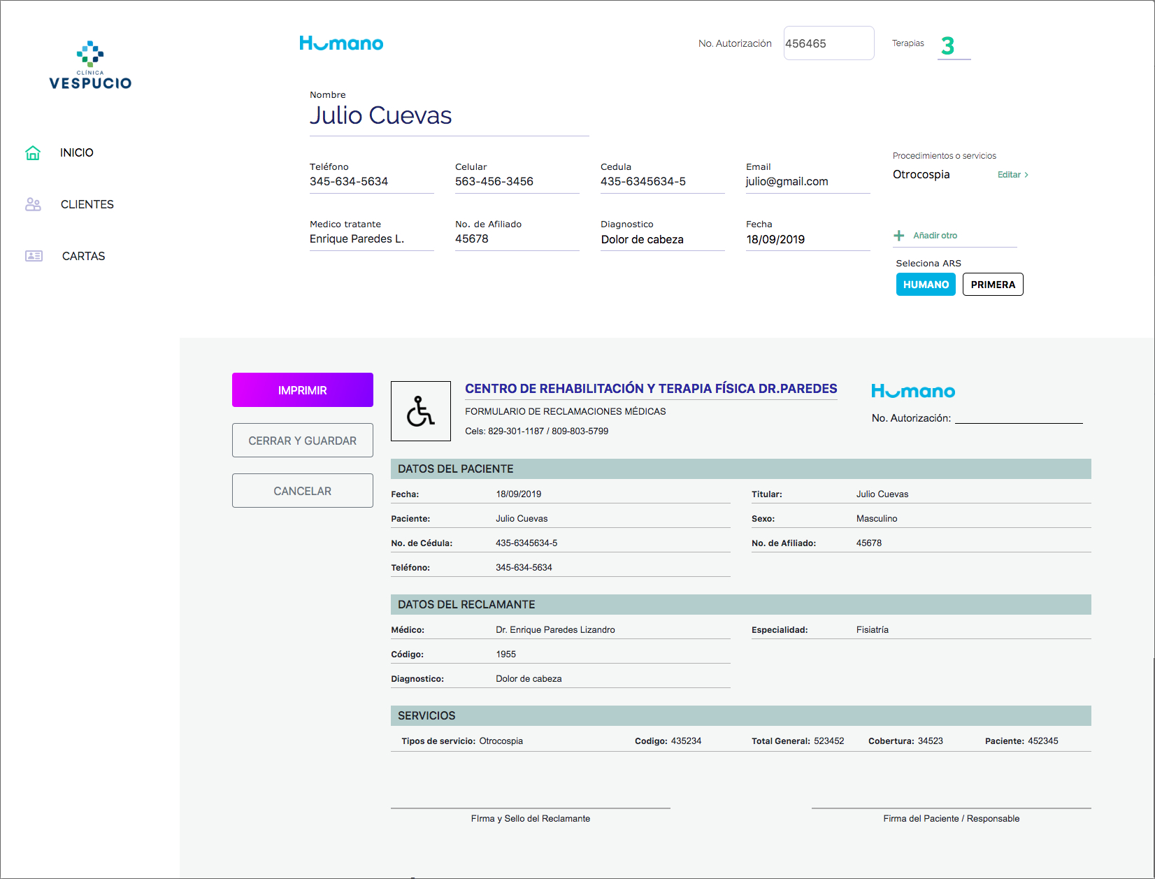 Finally, the result was amazing. A web application that allow doctors and physical therapists to store and print their customer information. The response of our customers was positive we made their work a lot easier, some of them had no internet connection so we used docker to convert the app offline.