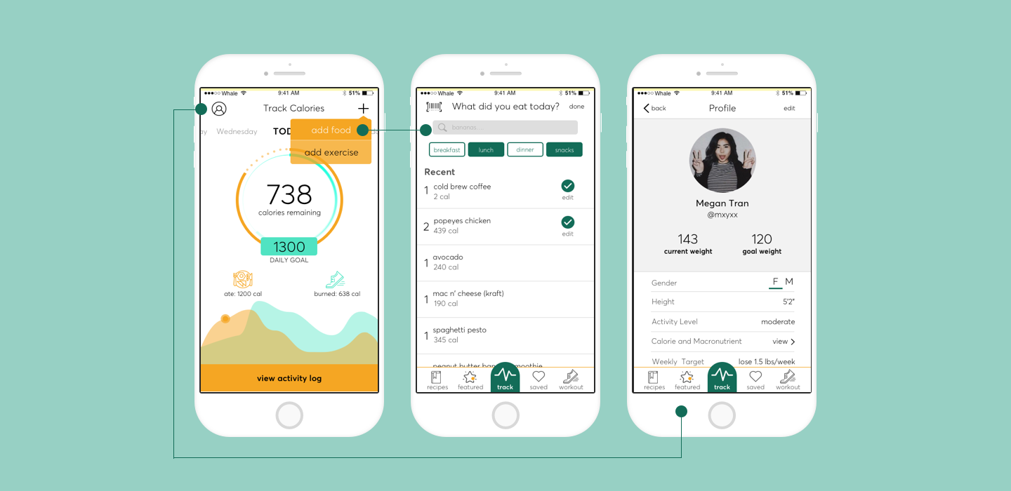 Design an app to educate users on having a balanced, healthy diet and give them the tools they need to achieve their fitness goals. Understand that these tools work cohesively and motivate them to take action to be held accountable.