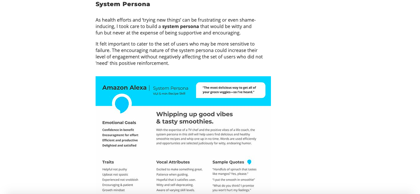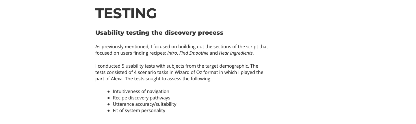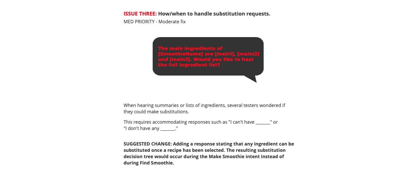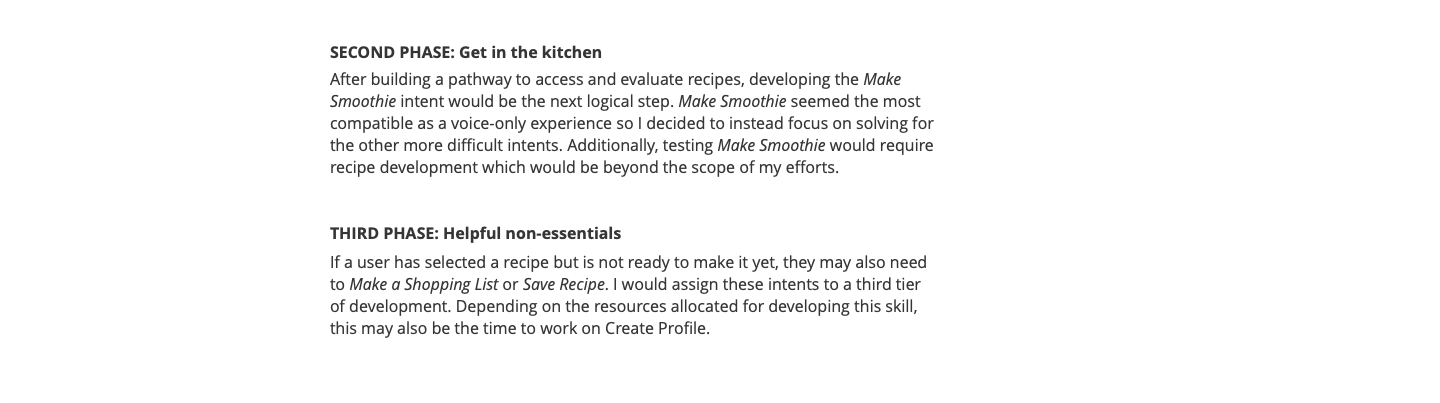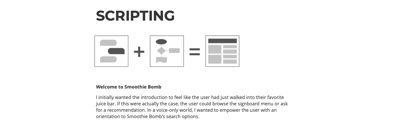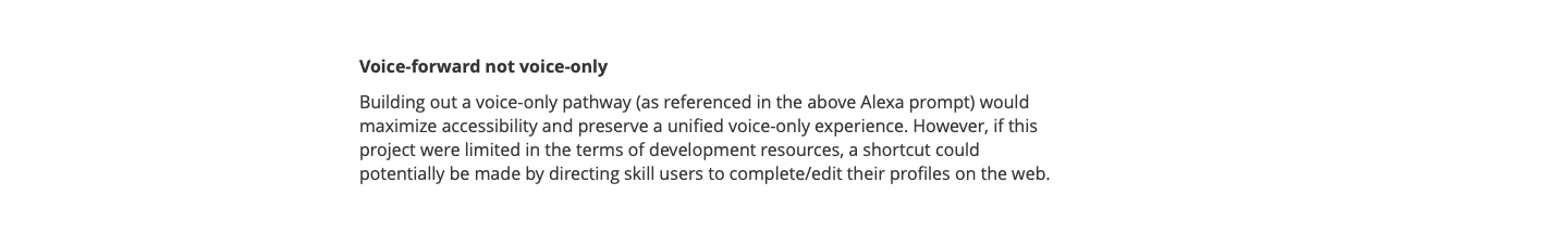My VUI experience was awesome (shout out to my mentor, Ilana!) VUI/Conversational design really makes you focus on user-testing because, unlike screen design, you can’t just look at your design and go, “yeah, that makes sense.” When writing your script and flow, you’re basically already at the high-fidelity stage (expect for your voice sounding a little less robot-y) so you can get great results from testing right away.