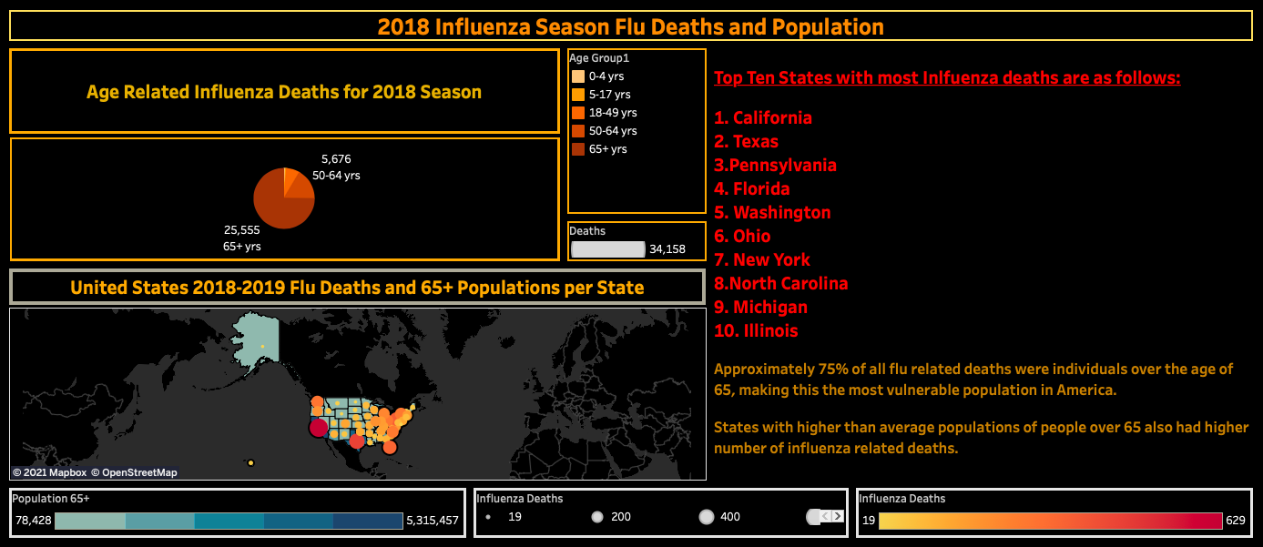Current visual illustrate peak flu season trends and peak areas of need. With new analysis visuals will need to be added and revised for recommendations. Current visual trends can be viewed in Appendix for better understanding of analysis conducted thus far.