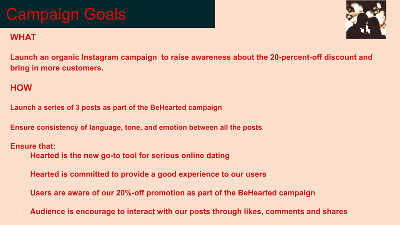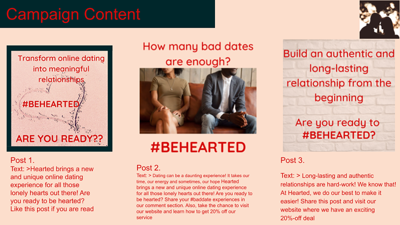 During the CareerFoundry Intro to Digital Marketing Course, you’ll build out a job-ready project for your portfolio. Below is a breakdown of graduate Tiago’s “BeHearted” Instagram campaign portfolio project for a dating platform.