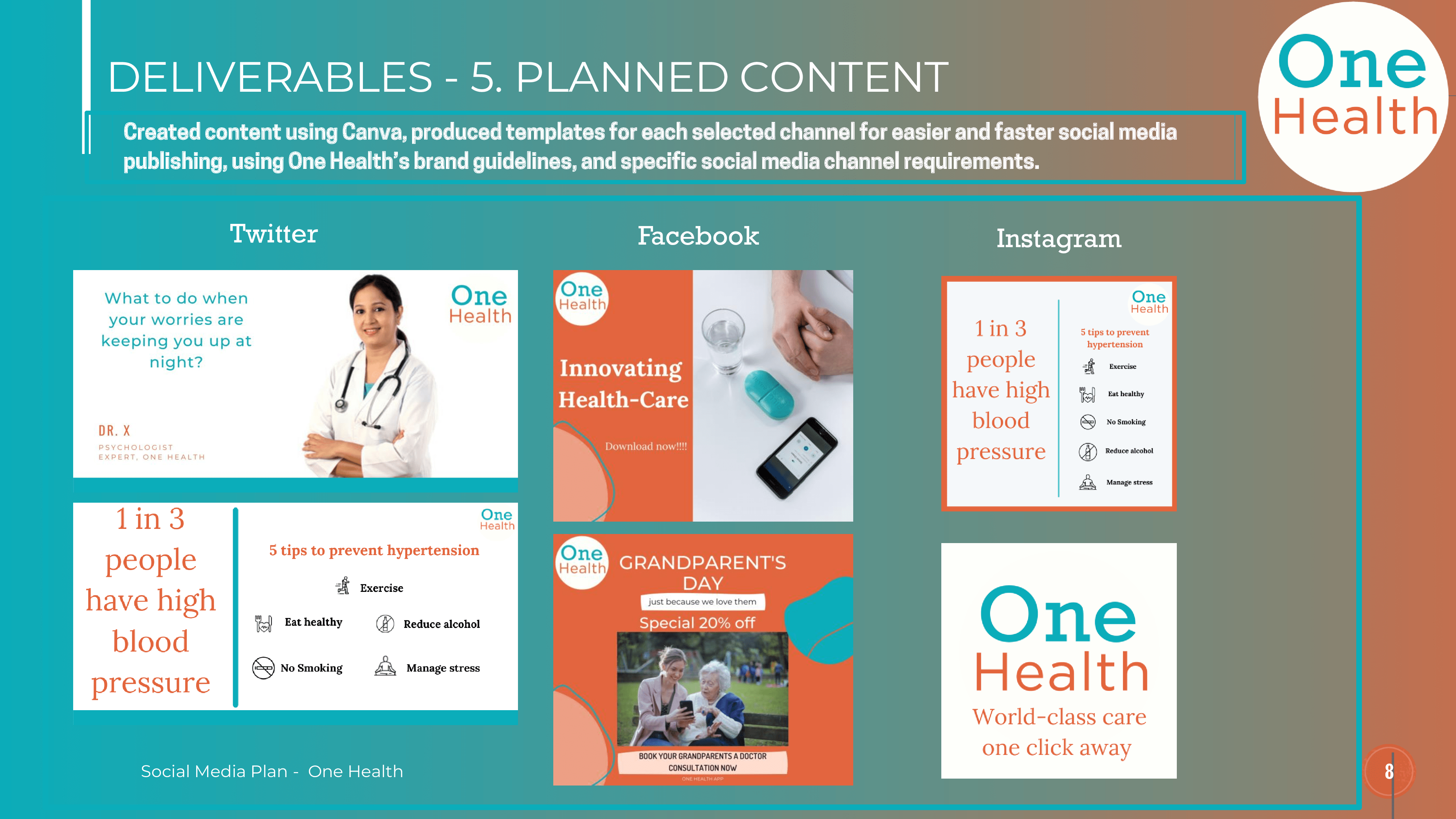 During the CareerFoundry Digital Marketing Program you’ll build out a job-ready project for your portfolio. Below is a breakdown of graduate Tiago’s project, One Health.