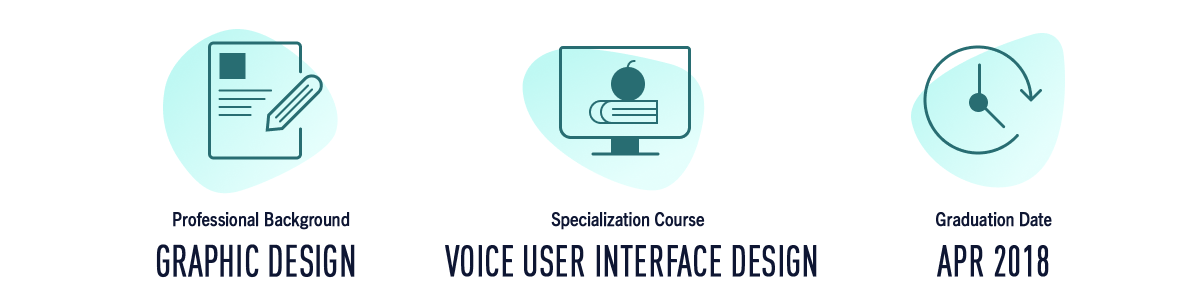 “I chose to pursue UX design because I wanted to do more critical thinking in my day today, and I wanted to create more impact in my work. I didn’t feel like I was getting that in visual design. I chose voice design because of my interest in AI and chatbots. I believe voice assistants will be the way of the future, and I want to create better service design through voice interfaces.”